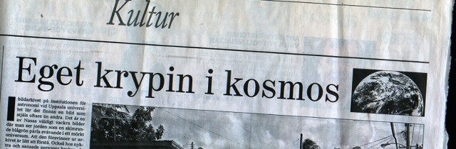 I bildarkivet på institutionen för Astronomi vid Uppsala universitet lär det finnas en bild som stjäls oftare än andra. Det är en av NASA:s oändligt vackra bilder där man ser jorden som en skimrande blågrön pärla svävande i ett mörkt universum. Att den försvinner ur arkivet är lätt att förstå. Också hos nyktra och sansade personer brukar sådana bilder locka fram en hisnande känsla och ett visst filosofiskt sinnelag. Det är ju något mycket märkligt att kunna se jorden utifrån. Tafatt griper man efter orden och mumlar något om vårt hem i kosmos.
