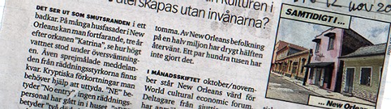 Här ställs konferensretoriken på sin spets. Visst har kultursektorn tillväxtpotential. Men om grannarna inte kommer tilbaka? New Orleans är berömt världen över för den kreativa energi som frigjordes i just de kvarter och bostadsområden som nu inte återbefolkats. Kan en stad återuppbyggas utan dess invånare? Kan ett kulturliv återuppstå?